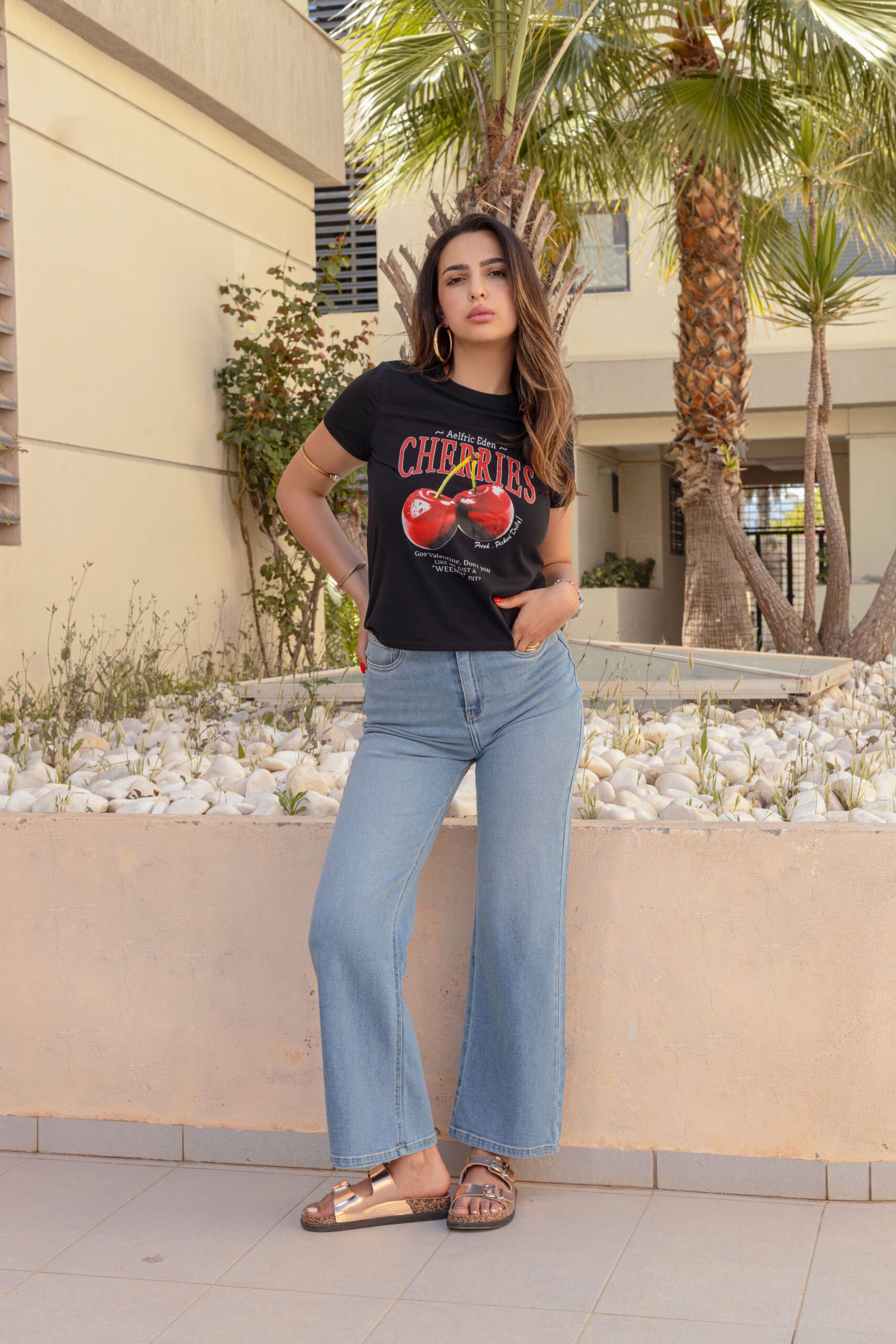 Jean bleu clair taille haute à coupe ample et droite, légèrement raccourci. Sa coupe wide leg fluide et sa teinte uniforme offrent un style moderne, confortable et épuré, idéal pour un look décontracté et soigné.